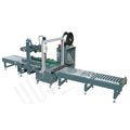 全自動封箱打包生產(chǎn)流水線主要操作流程:已裝好產(chǎn)品折好上蓋的產(chǎn)品箱從左邊的滾筒進入此流水線,進入第1臺包裝機械:全自動一字型封箱機(進行一字型封箱)—→進入第二臺包裝..