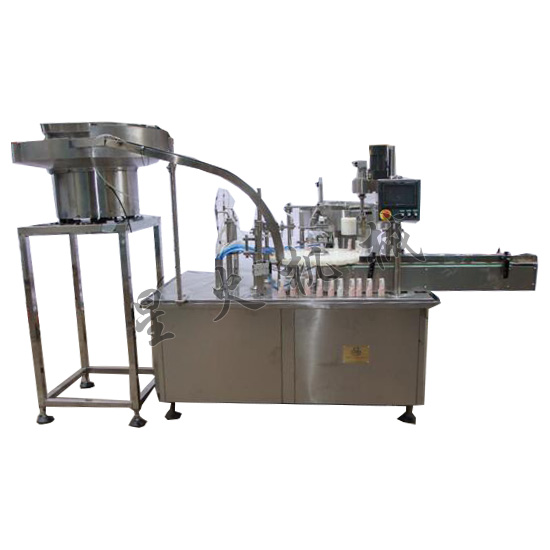 這款振蕩理瓶灌裝旋蓋一體機(jī)專門針對(duì)小劑量的藥液、口服液、飲料、保健品、香水等液體灌裝設(shè)計(jì)的 、尤其適用于1ml-10ml容量的灌裝 。采用單頭蠕動(dòng)泵灌裝,316L不銹鋼材料;工作臺(tái)面以不銹鋼材料防護(hù),整機(jī)符合GMP要求。采用振蕩式理瓶、圓盤定位灌裝,有自動(dòng)對(duì)口裝置,自動(dòng)上蓋旋蓋,定量灌裝,計(jì)量準(zhǔn)確。特別適用于中小批量的生產(chǎn)可選購(gòu)防護(hù)罩!