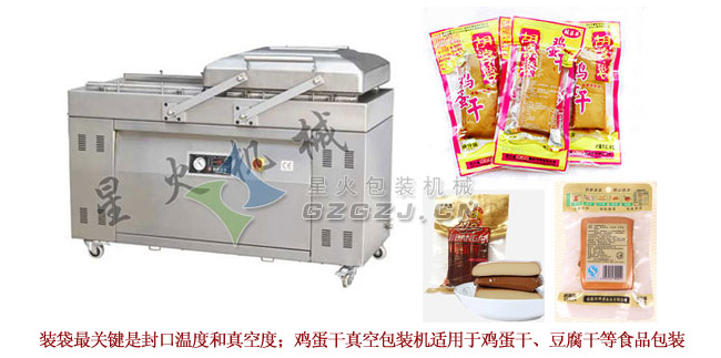 雞蛋干是改變形狀的雞蛋。是以雞蛋為原料的新食品。是將雞蛋全蛋濃縮加工而成,產(chǎn)品營(yíng)養(yǎng)價(jià)值高,含有豐富的優(yōu)質(zhì)蛋白質(zhì),而且包裝輕便易攜帶,成為新時(shí)尚休閑零食;雞蛋干的生產(chǎn)工藝比較復(fù)雜,用到的設(shè)備有:打蛋機(jī)——攪拌桶——灌裝機(jī)——蒸煮鍋——鹵煮鍋——真空包裝機(jī)——殺菌鍋等;其中星火食品包裝機(jī)械生產(chǎn)的蛋液灌裝成型機(jī)就起到了灌裝定型的作用;