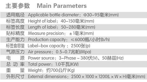 適用于圓形玻璃瓶、塑料瓶、聚酯瓶的連續(xù)紙標(biāo)簽粘貼。貼標(biāo)性能穩(wěn)定、換標(biāo)操作簡(jiǎn)單。