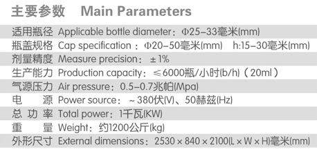 配套產(chǎn)品核心配備:GX-8-4B型灌裝、旋蓋一體機(jī)