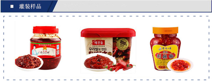 醬料灌裝生產線主要用于灌裝含顆粒的半流體、膏體、豆豉醬料物料的灌裝如辣椒醬、豆豉醬、火鍋料、牛肉醬、香菇醬、郫縣紅油豆瓣醬等