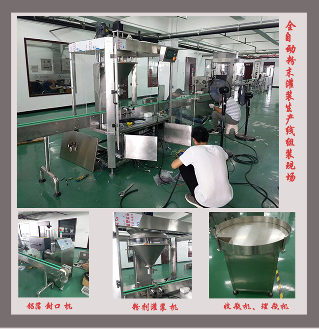 粉末灌裝生產(chǎn)線包扣理瓶機-自動上料機-單頭粉末灌裝機-鋁箔封口機-旋蓋機-收瓶組成,適用于瓶裝豆奶粉、蛋白粉、豆?jié){粉、米粉、咖啡粉、蘇打粉、藕粉、核桃粉、膨松劑、泡打粉、酶制劑等灌裝封口和旋蓋等工作,是一款經(jīng)濟實用的灌裝封口旋蓋生產(chǎn)線;瓶裝粉末灌裝生產(chǎn)線也可選配貼標機、噴碼機、全自動封箱打包機等設備實現(xiàn)無人化灌裝包裝流水線