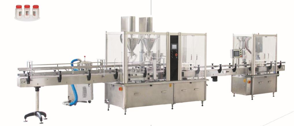全自動(dòng)粉劑灌裝生產(chǎn)線(xiàn)適用于奶粉、味精、固體飲料、白糖、葡萄糖、咖啡、固體醫(yī)藥、農(nóng)藥、粉粒狀添加劑、染料、獸藥等各種包裝規(guī)格的粉劑/顆粒物料的包裝,粉劑灌裝生產(chǎn)線(xiàn)由半自動(dòng)粉末充填包裝機(jī)、自動(dòng)旋蓋機(jī)、電磁感應(yīng)鋁箔封口機(jī)、立式圓瓶貼標(biāo)機(jī)、小字符噴碼機(jī)組成。能完成計(jì)量、充填等工作。整機(jī)全不銹鋼,抗腐蝕;PLC觸摸屏人機(jī)界面,中英文顯示,操作便捷直觀(guān);符合國(guó)家“QS”“GMP”認(rèn)證要求;充填采用伺服電機(jī)驅(qū)動(dòng),攪拌采用臺(tái)灣免保養(yǎng)減速電機(jī),性能穩(wěn)定,包裝精度高;全密封、不銹鋼和有機(jī)玻璃料箱組合,拆洗方便;工作臺(tái)方便升降;采用特制螺旋充填、電腦實(shí)時(shí)跟蹤,故具有速度快、精度高;各種包裝參數(shù)可存儲(chǔ),很多可存儲(chǔ)10個(gè)配方;對(duì)于粉塵較大的物料包裝,可加配吸塵系統(tǒng),清潔車(chē)間環(huán)境